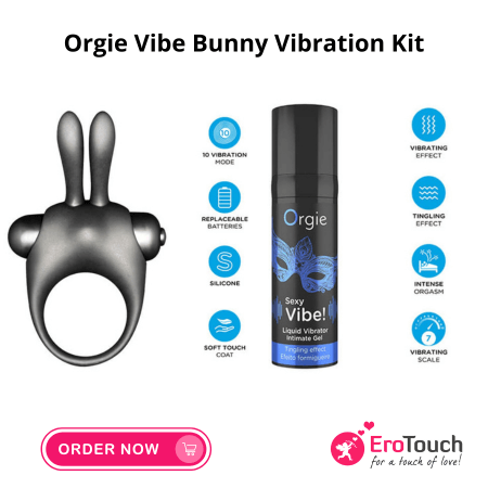 Bunny. This kit combines the tingling effects of the Sexy Vibe! Liquid Vibrator with the intense vibrations of the bunny-shaped vibrating ring, offering 10 vibration modes to maximize your senses.