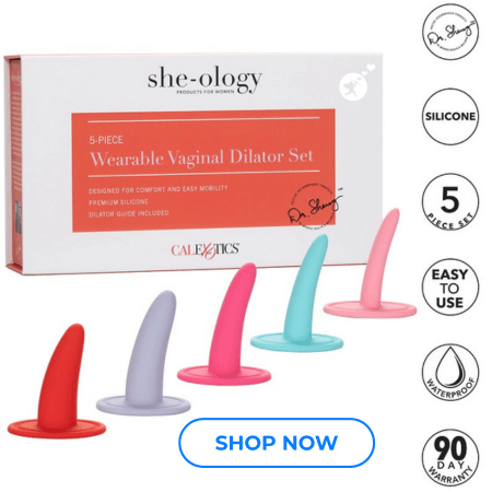 Revitalize and strengthen vaginal muscles with the contoured She-Ology™ 5-Piece Wearable Vaginal Dilator Set.
