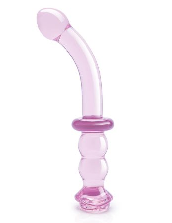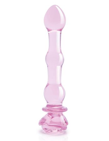 With a curved design and a rose-shaped base with beaded handle, this 8″ Rosebud G-spot dildo from the Glaze Glass collection is designed to hit the right spot any time.