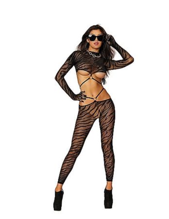 Dreamgirl Fishnet Teddy with chain leash black Queen size