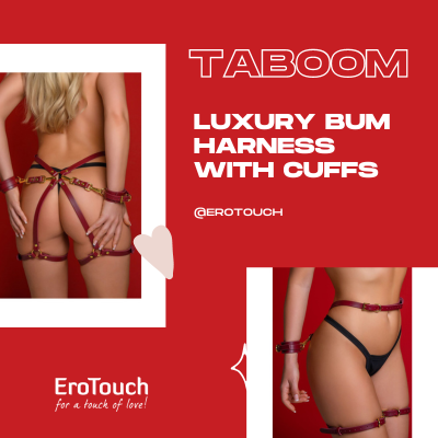 The harness is paired with TABOOM wrist cuffs for a seductive combination that ignites your deepest desires and promises a memorable, passionate experience.