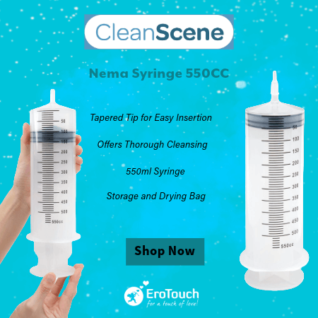 The syringe holds up to 18.5 fluid ounces (550ml) and the set also includes a travel-friendly compact douche and storage bag for on-the-go clean.