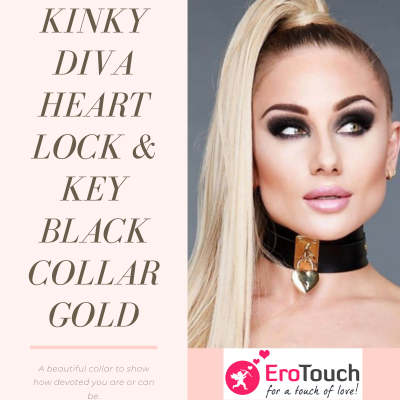 Kinky Diva Heart Lock & Key Black Collar Gold