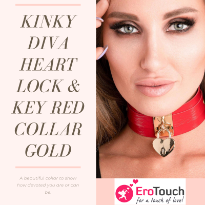 Kinky Diva Heart Lock & Key Red Collar Gold