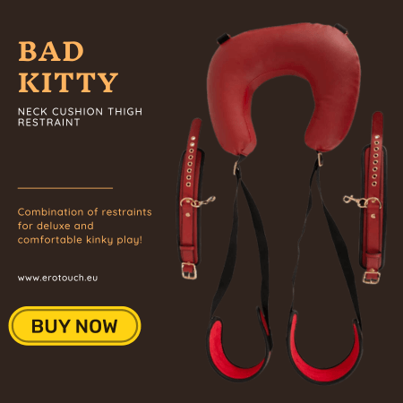 The Neck-Cushion-Thigh-Restraint from Bad Kitty stands out because of its luxurious and stylish design in high-quality red and black imitation leather and gold-coloured accessories. A real highlight for exciting position and restraint play!