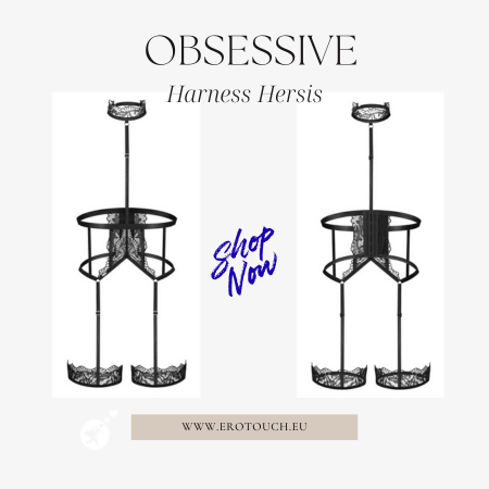 The elegant black Hersis harness by Obsessive is made out of soft stretchy straps with delicate lace details.