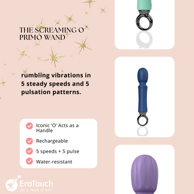 The PrimO Wand vibe is a mid-sized classic wand that delivers rumbling vibrations in 5 steady speeds and 5 pulsation patterns.