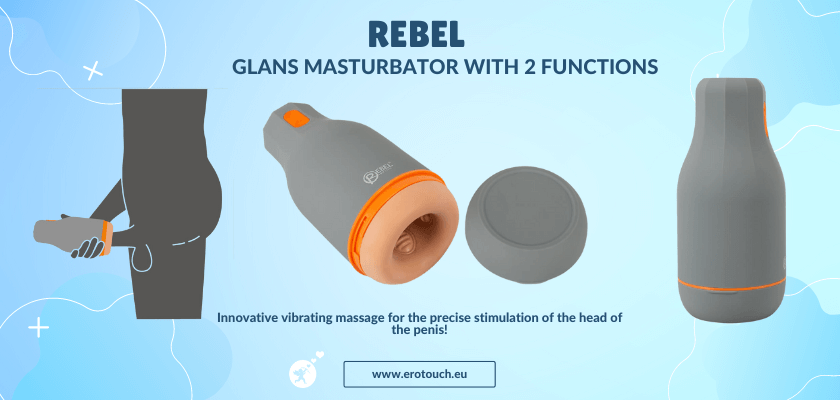 Compact Glans Masturbator with 2 Functions from Rebel with a new, innovative massage technique – The Super Sqeeze! The intense vibrations stimulate the glans and frenulum directly. World premiere: design and development Made in Germany!