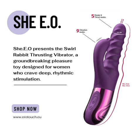 She.E.O presents the Swirl Rabbit Thrusting Vibrator, a groundbreaking pleasure toy designed for women who crave deep, rhythmic stimulation.